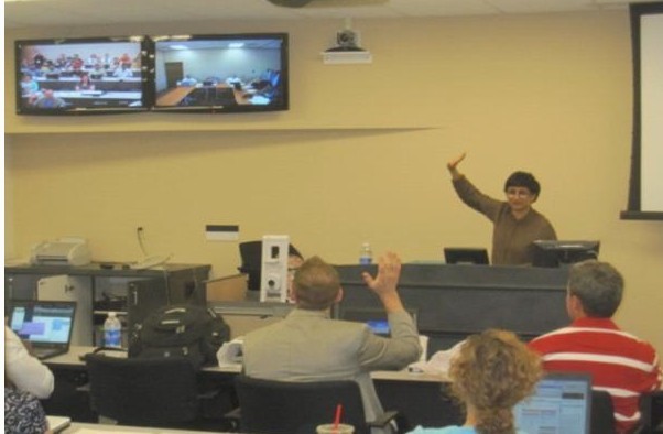 在協和大學期間,學生們參加威斯康辛協和大學MBA《項目管理》(Project Management)和《環境研究》(Environmental Studies)兩門課程的現場教學活動。教室中有來自世界各個國家的學生,還有在遠程視頻上課的學子們。老師在課堂講授過程中通過不斷的課堂提問,要求在場的學生們及參加遠程教學的學生積極參與問題討論,加強互動環節。同時也會詢問學生對授課內容有什么疑問,并對學生提出的問題作出詳細的解答。課堂上主動、積極的互動交流,使學生們不僅掌握了學術知識,也幫助學生解決了在實際工作中會碰到的問題。在實踐中發現問題,用理論知識分析和解決問題正是MBA教學的特色之一。